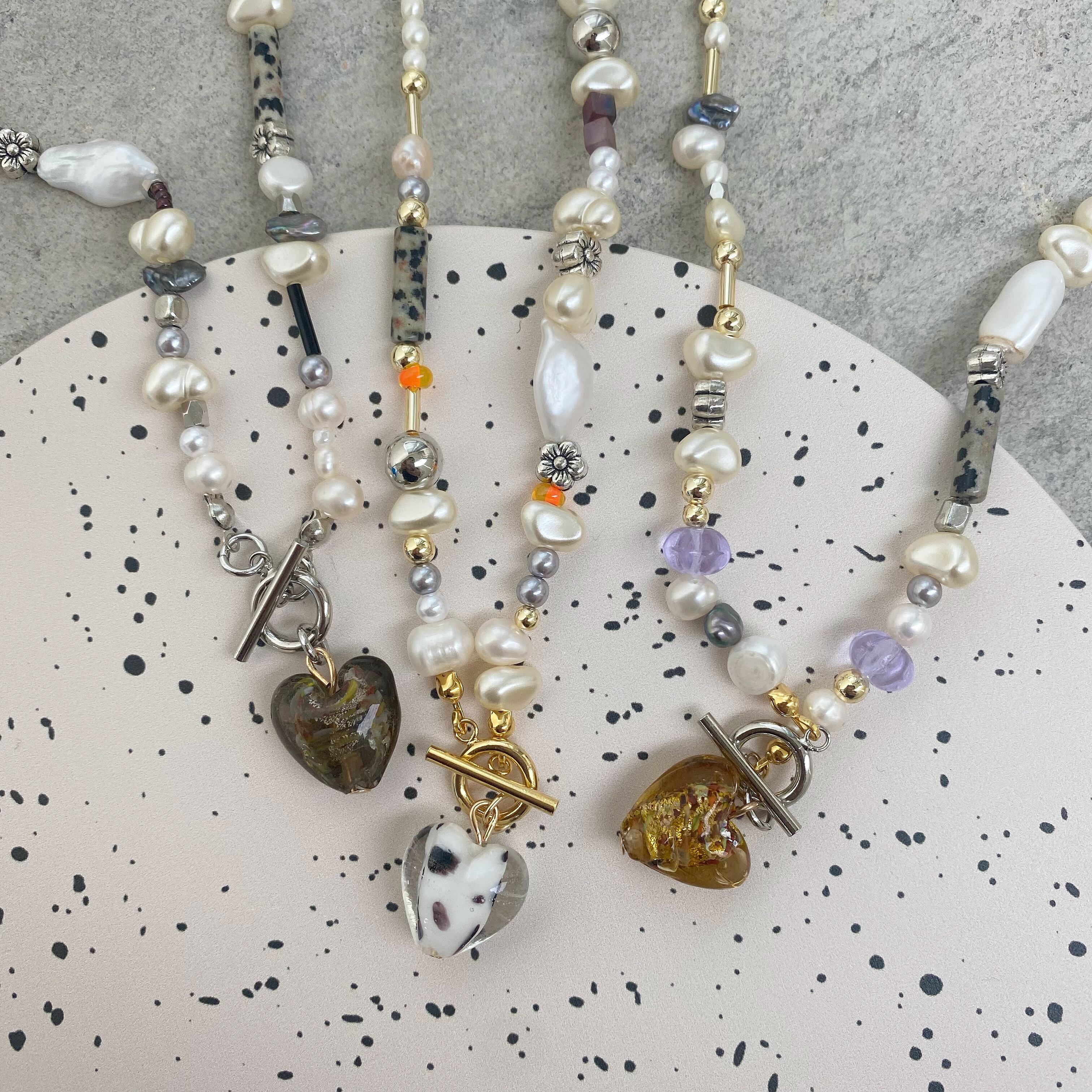 ハートチャームネックレス/ブラック